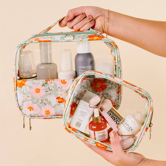 Clearly Chic Cosmetic Bag Set-Bouquet Beauty Sage